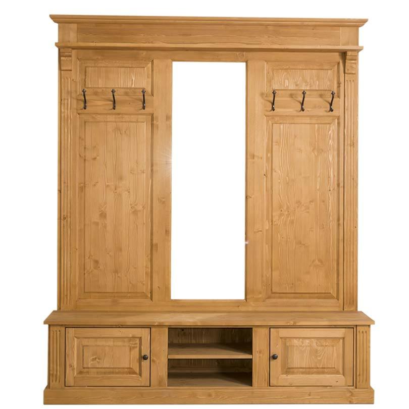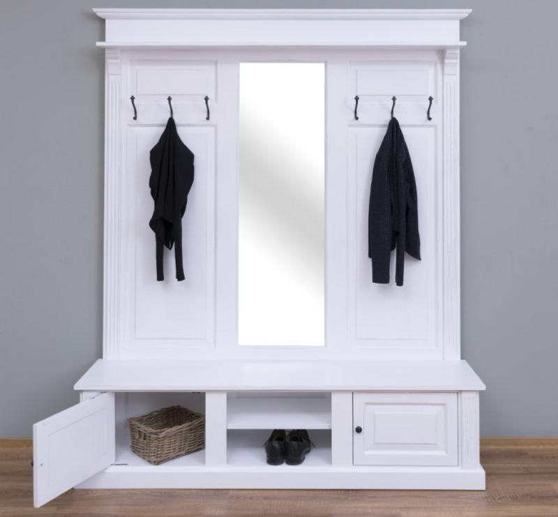Fabriqué à partir de bois de pin 100% massif. Il est livré monté et sa solide construction permet une utilisation de très longue durée. C'est un meuble qui offre de grandes possibilités de suspension pour les vêtements dans la partie supérieure ainsi que des espaces de rangement de la partie inférieure, un élément indispensable pour créer un couloir parfait. Le miroir est inclus dans le prix ! C'est le haut de gamme de la série, en fait le modèle le plus spectaculaire et impressionnant. Excellente qualité et un design impressionnant avec un style caractéristique et élégant donné par les ornements spécifiques montés sur ce meuble !